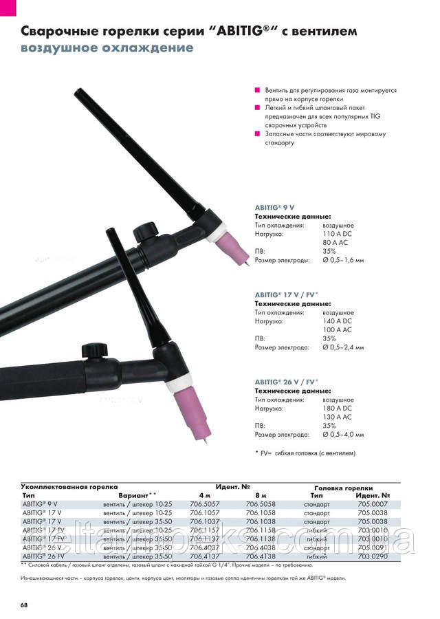 Зношувальні частини — корпуси пальників, цанги, корпусу цанг, ізолятори та газові сопла ідентичні пальникам тієї ж ABITIG® моделі.